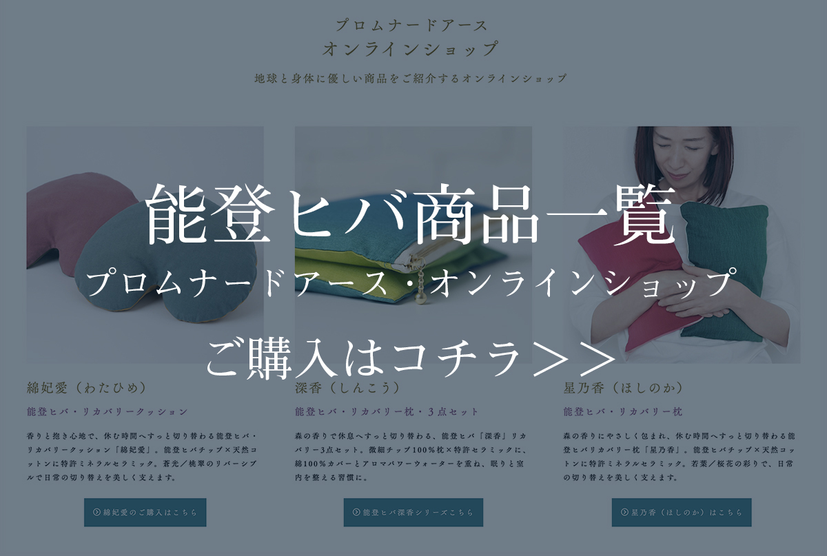 天然能登ヒバチップにミネラルセラミックを配合した枕と能登の美しい大自然をイメージした枕カバー、能登ヒバ蒸留水に精油を特殊技術でブレンドした地球と身体に優しい3点セットです。
