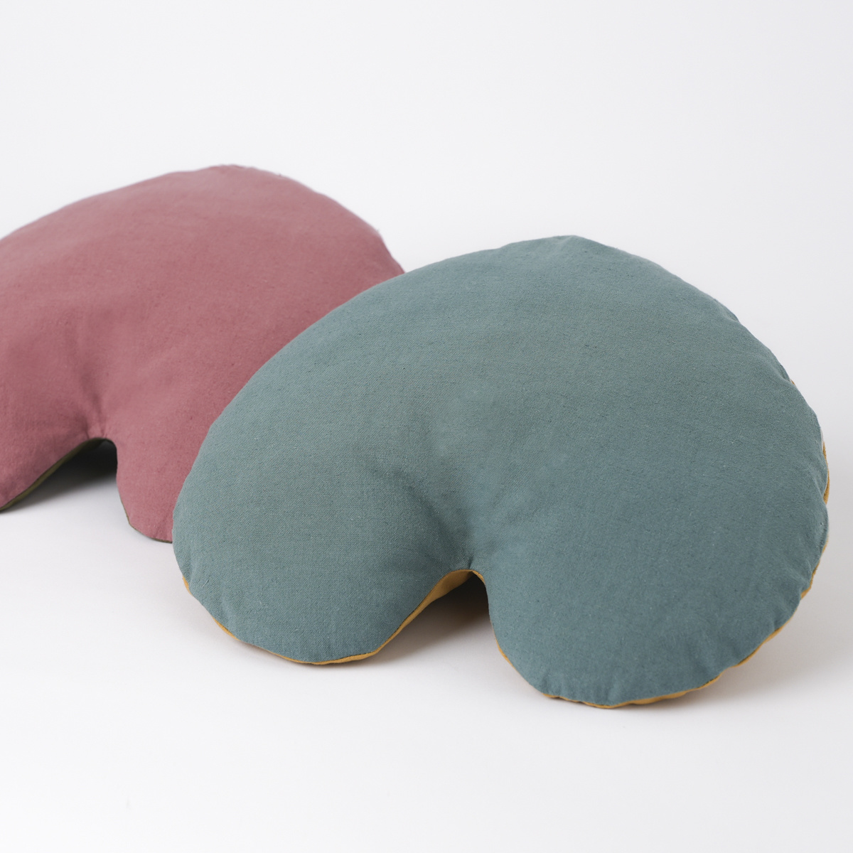 香りと抱き心地で、休む時間へすっと切り替わる能登ヒバ・リカバリークッション「綿妃愛」。能登ヒバチップ×天然コットンに特許ミネラルセラミック。蒼光/桃翠のリバーシブルで日常の切り替えを美しく支えます。