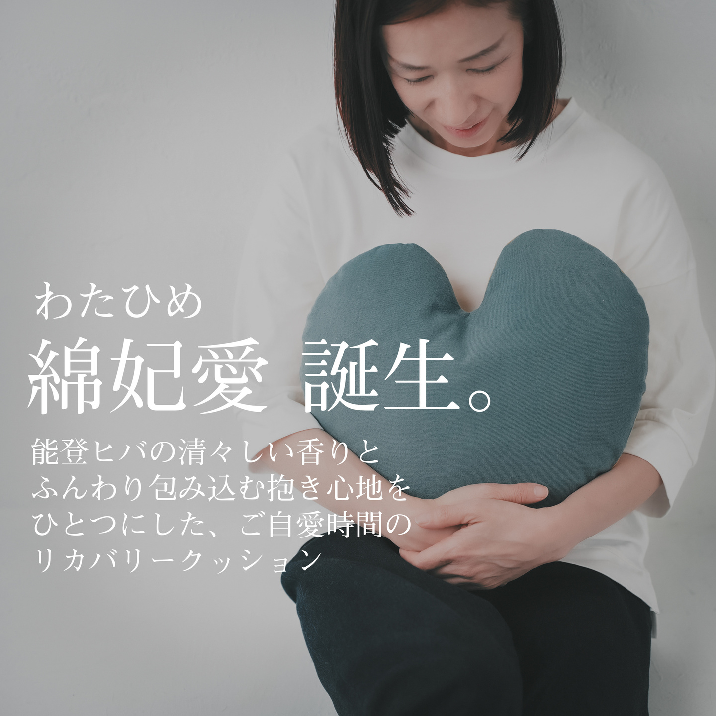 香りと抱き心地で、休む時間へすっと切り替わる能登ヒバ・リカバリークッション「綿妃愛」