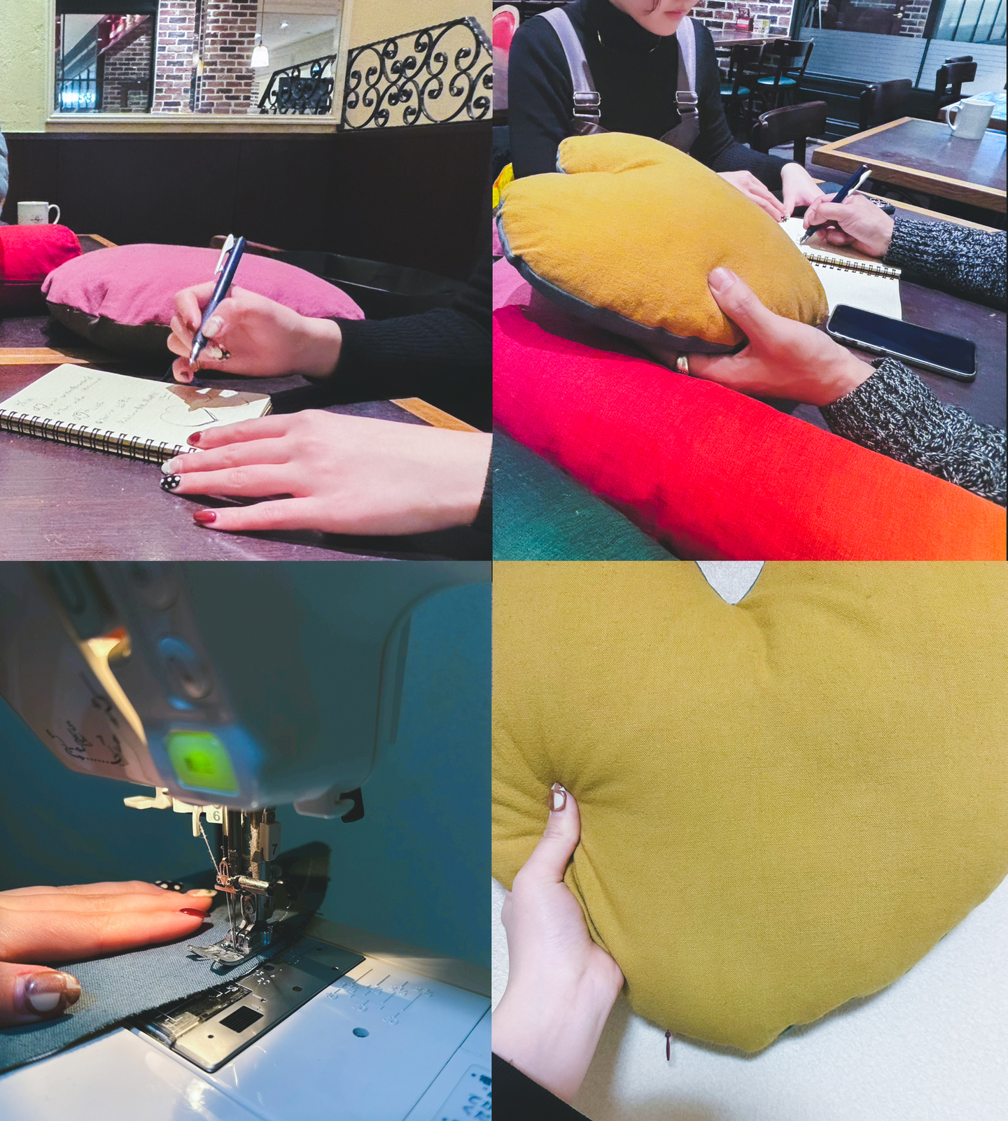 能登ヒバ・リカバリークッション「綿妃愛」の縫製は、美術大学の学生さんの協力のもと、一つひとつ丁寧な手仕事で仕上げています。手作業ならではのぬくもりを感じられるかたちでお届けします。